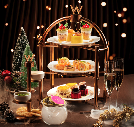 Experience a magical festive escape at WOOBAR in W Hong Kong, transformed into a chic winter wonderland for the season. Indulge in a luxurious afternoon tea featuring artfully crafted gourmet treats, perfectly paired with the sparkling elegance of fine champagne, for an enchanting holiday celebration like no other.