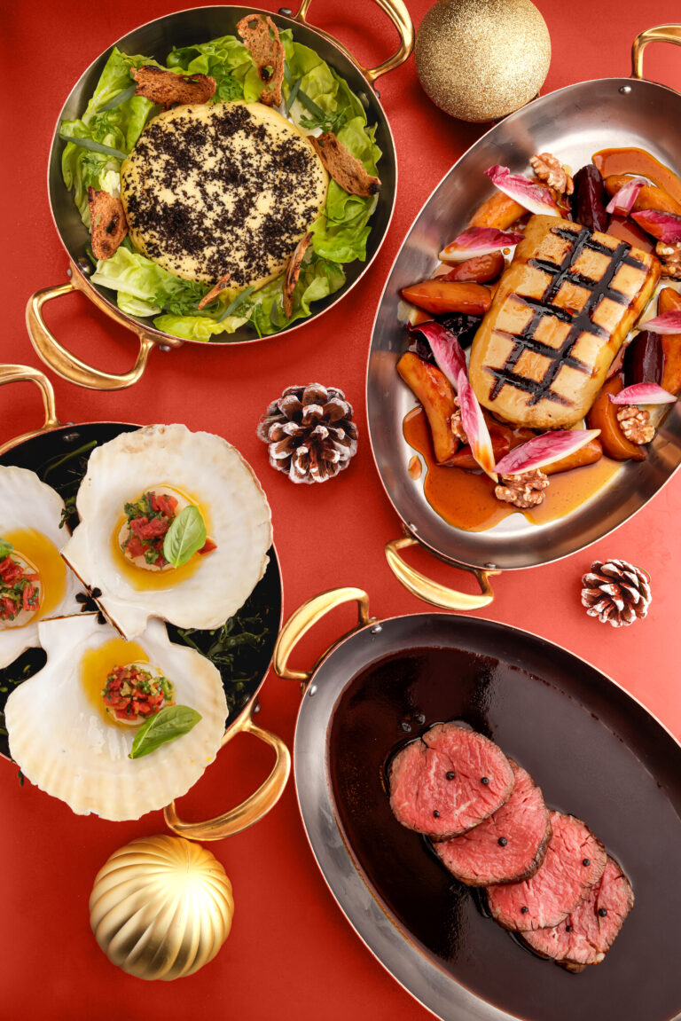 Jimmy’s Kitchen, the revamped iconic Central institution, invites guests to celebrate the festive season with its signature continental cuisine. This Christmas, enjoy a winter wonderland of flavors with a festive menu available for dinner on Christmas Eve, Christmas Day, and Boxing Day, featuring a 4-course meal. Start with choices like fried camembert or foie gras terrine, followed by comforting soups and mains such as beef Wellington or turkey ballotine, and finish with delightful desserts like sticky figgy pudding.